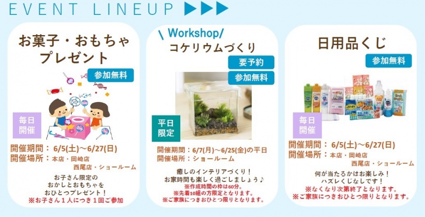 開催場所:本店・ショールーム・岡崎店・西尾店
