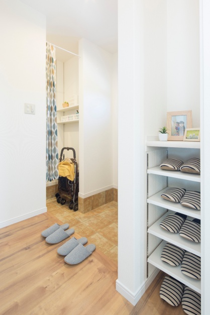 →入ってすぐに目につかないところへスリッパ専用の棚を設置