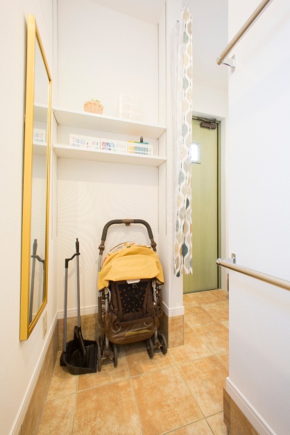 →土間収納に姿見の鏡を設置。