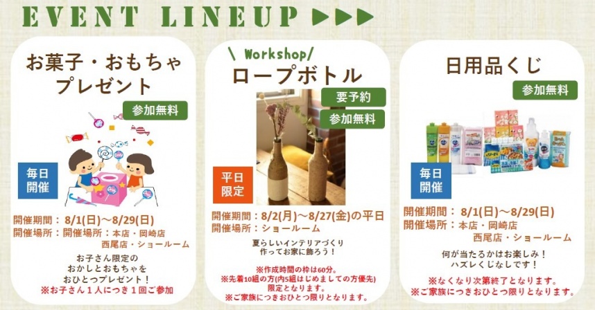 開催場所:本店・ショールーム・岡崎店・西尾店