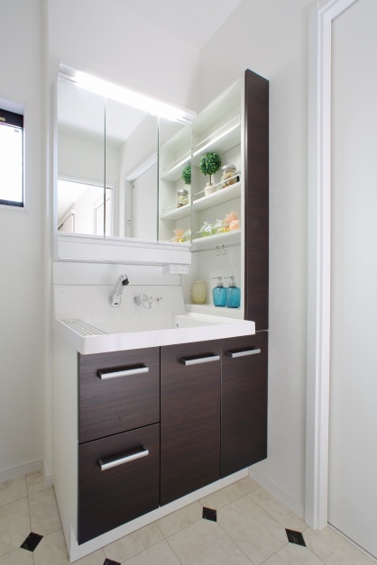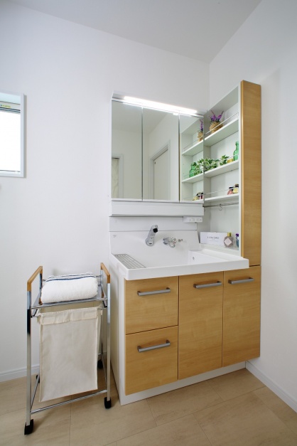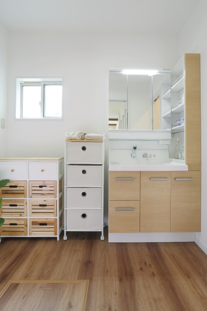 - ・意外と洗面は荷物に溢れるので、可動式の収納棚があるといい